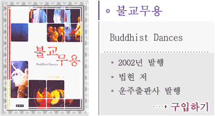 『불교음악감상』의 악보는 현재 전승되어지는 불교무용 반주곡으로, 이들 불교무용의 반주음악에 대한 내용과 절차는『불교무용』에, 영산재에 대한 구성과 절차는 『영산재 연구』에 바라춤·나비춤·법고춤·타주춤 등에 대한 음악분석은 『한국의 불교음악』등 3권의 단챙본에 상세히 기술되어 있습니다.